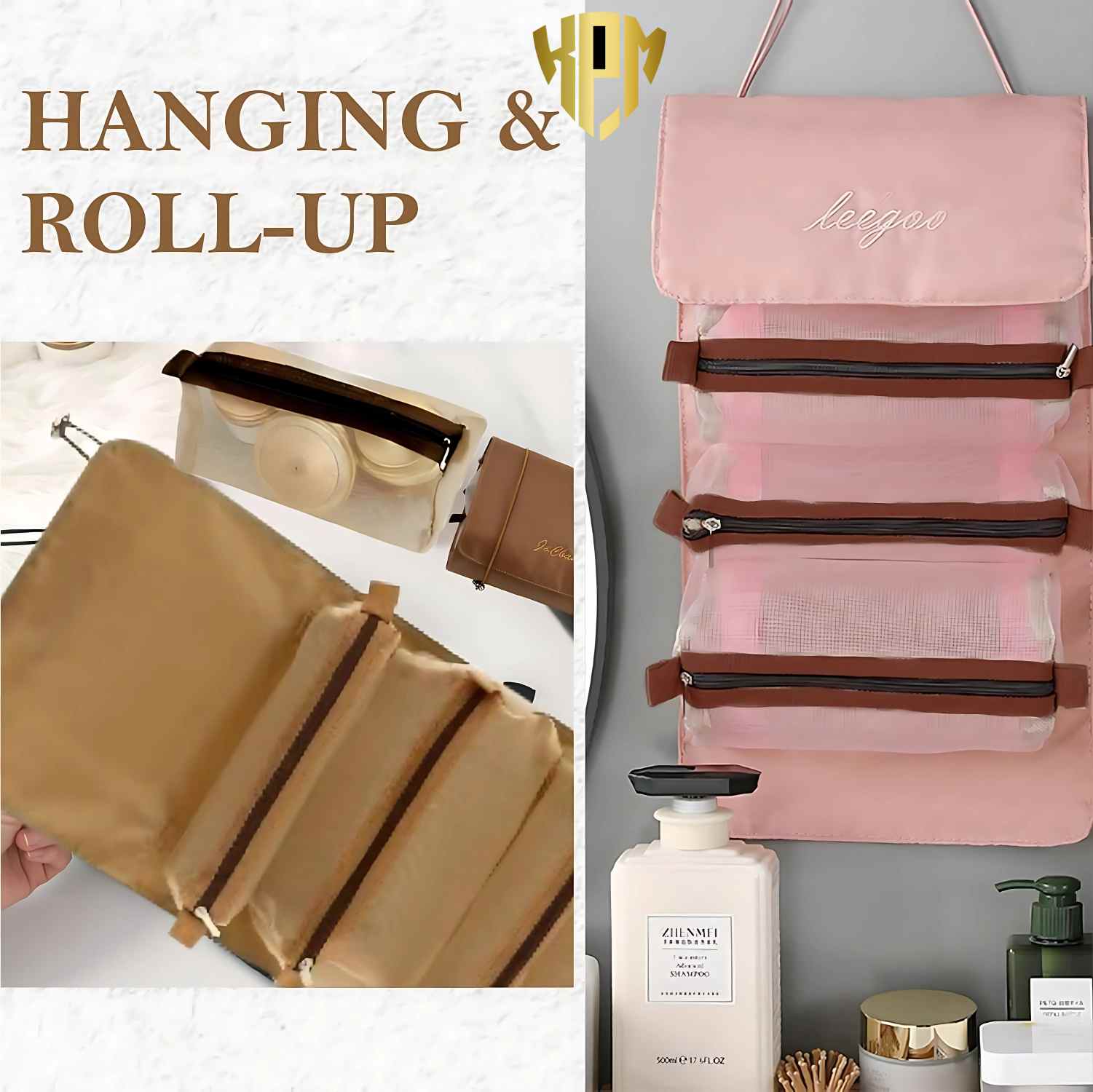 FOLDABLE AND PORTABLE: This toiletry bag can be rolled up and secured for easy carrying, The unfold Size is 21.46 inch X 9.06 inch, Making it ideal for travel, vacation, business trip, gym, camping, bathroom organization.