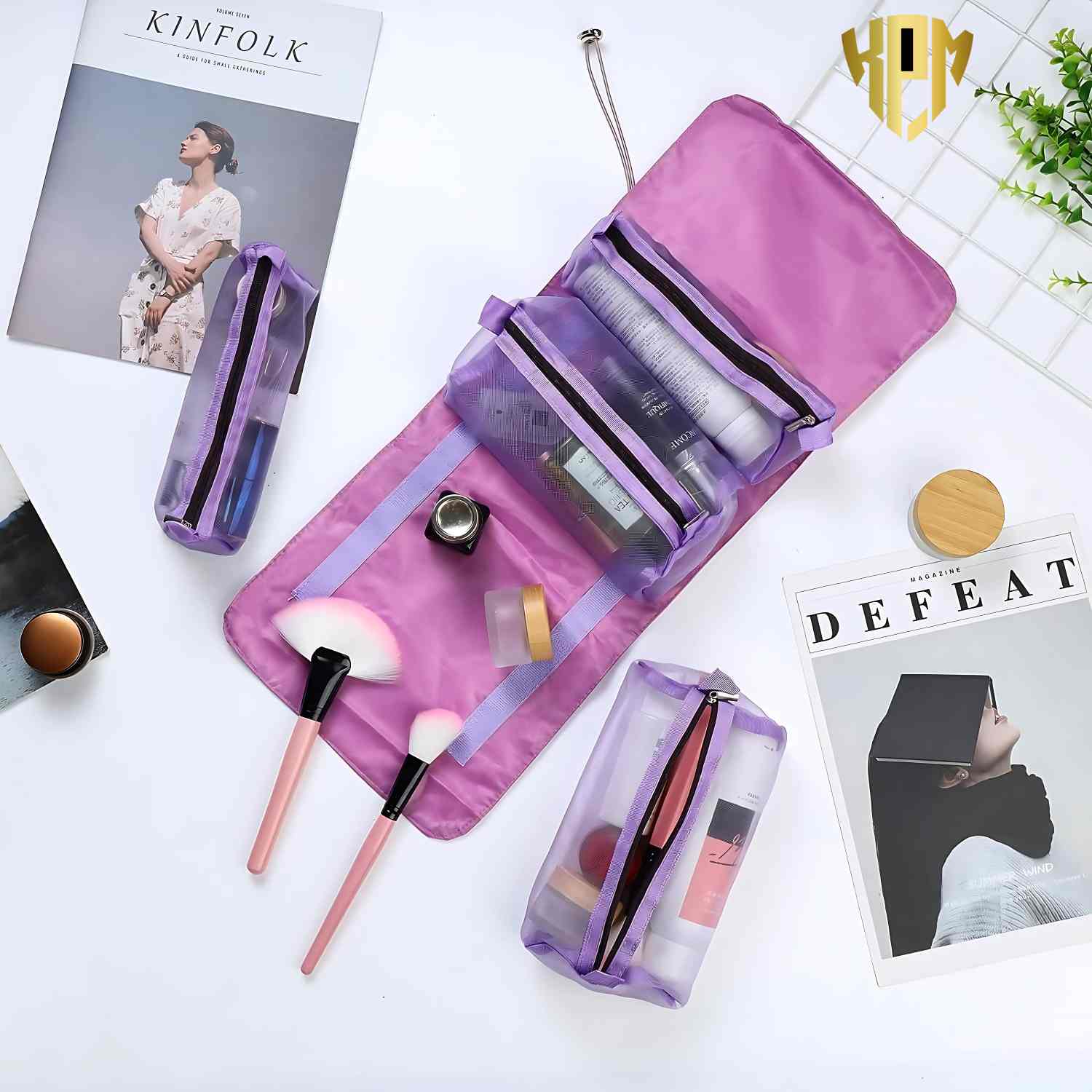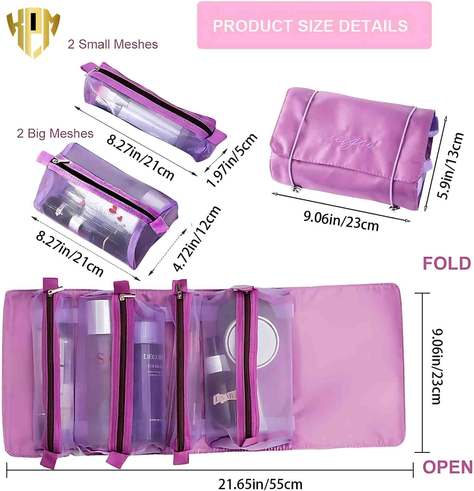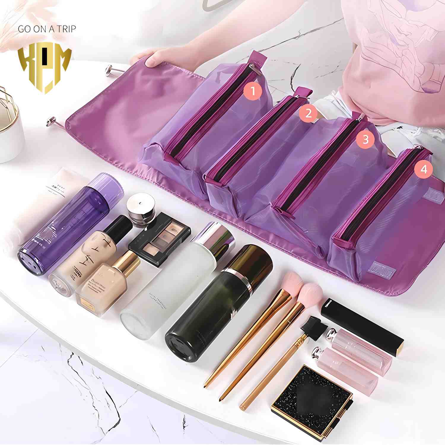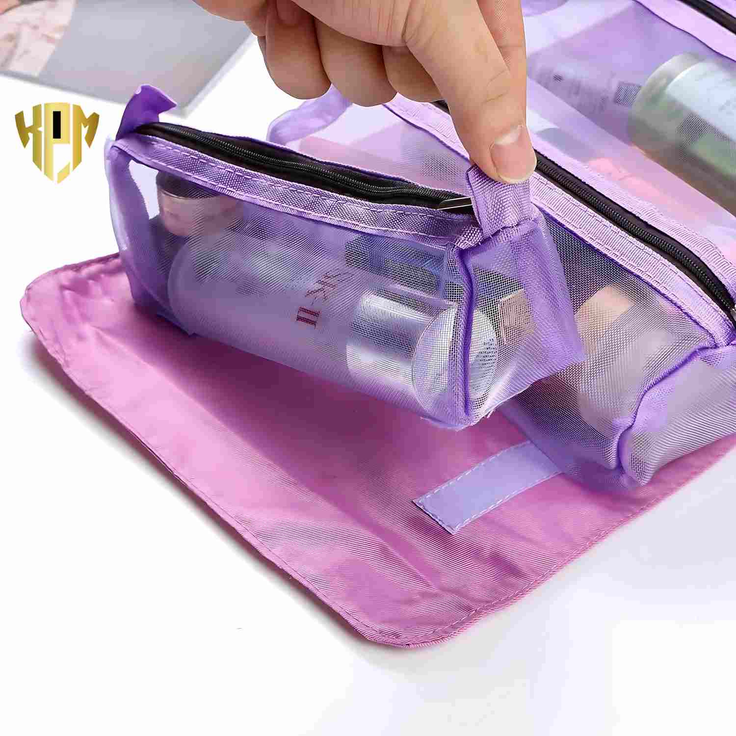 4 in 1 Large Capacity Cosmetic Organizer Mesh Bag (Purple)