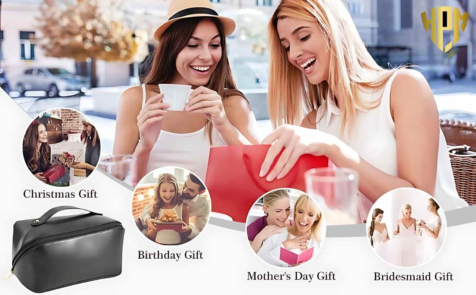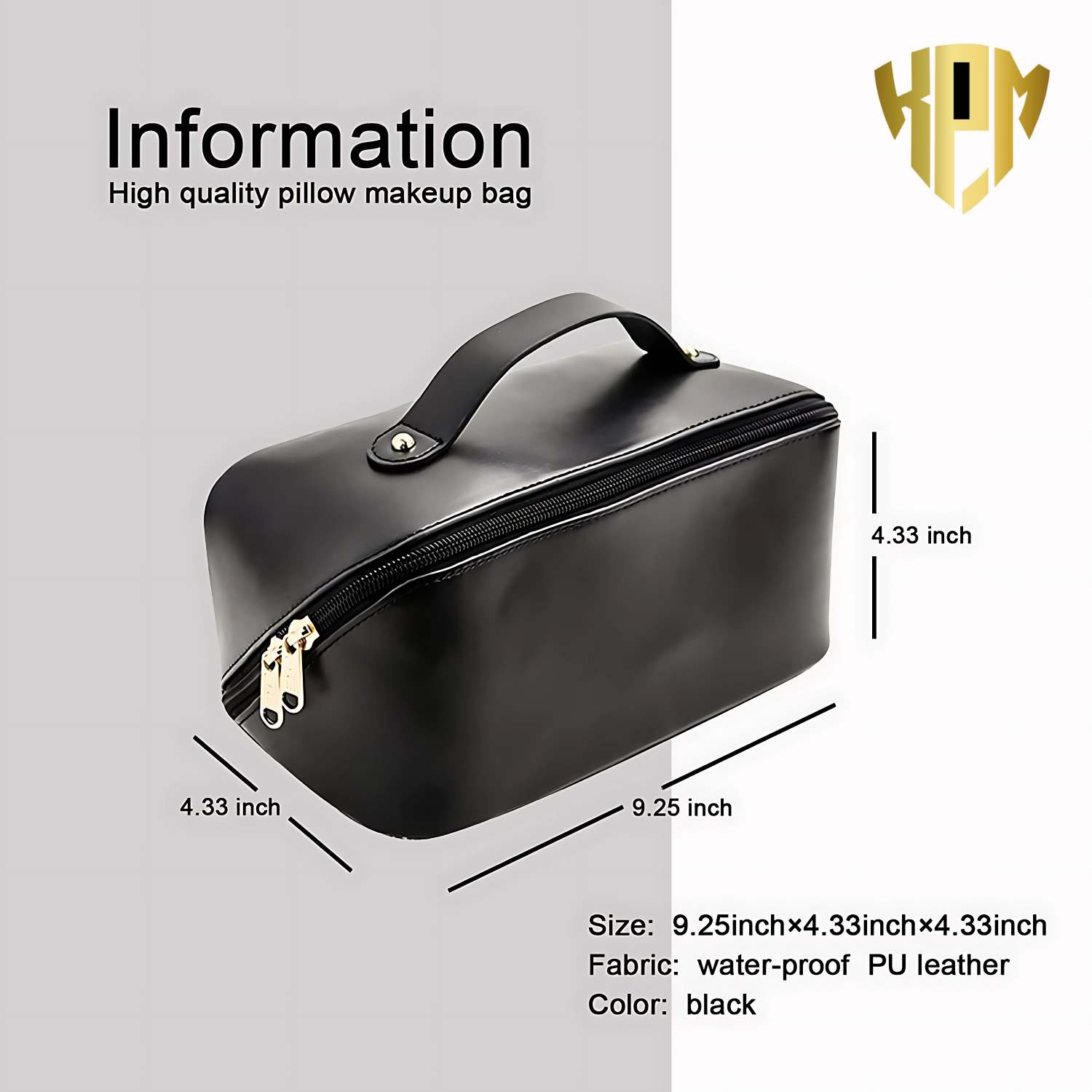 KPM WORLD ™ Women’s Large Capacity Cosmetic Travel Bag – Waterproof Leather Makeup Organizer with Wide Opening, Dividers with Handle (Cross Open, Black)