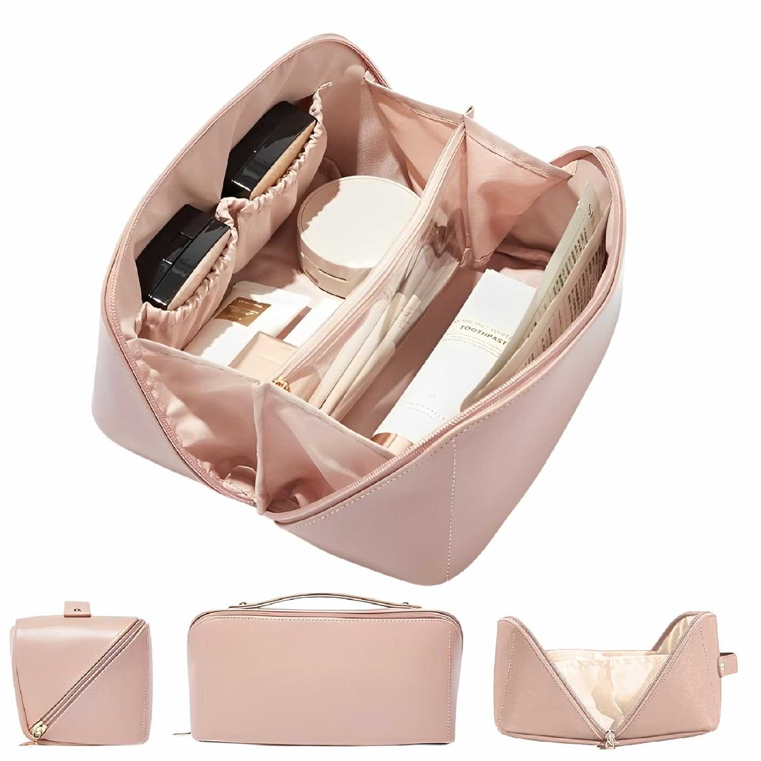 PRACTICAL: The Large makeup bags have enough space to store your makeup accessories, such as makeup brush, lip gloss, lipstick, eye shadow, makeup plate, perfume, mascara, nail polish, nail tools, toothpaste, toothbrush. Not only as a toiletry bag, but also as an accessory storage bag. Become a must -have for daily work, everywhere.