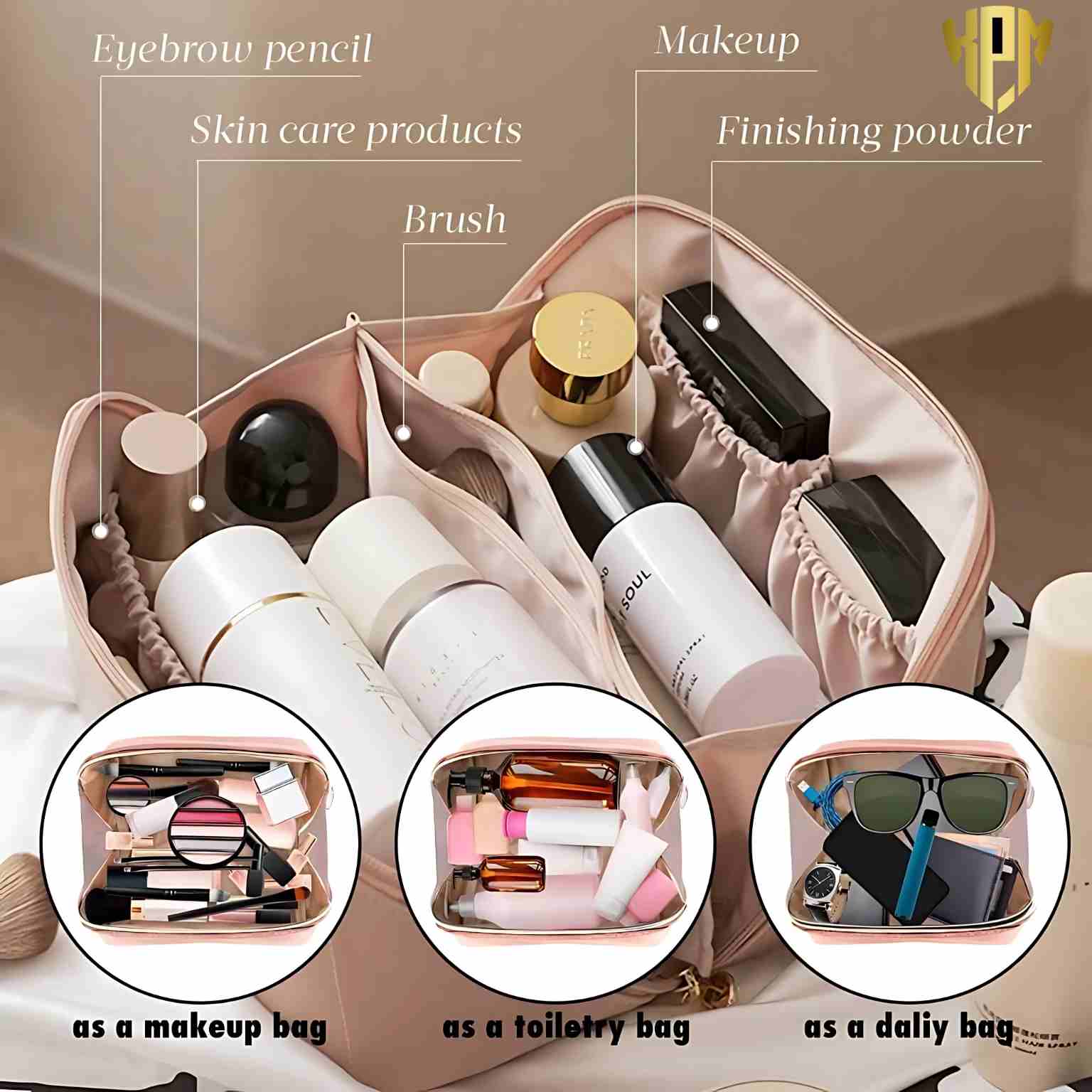 MULTIPURPOSE: This makeup bag can not only store your cosmetics, but also jewelry, electronic accessories, cosmetics, shaving supplies, etc.