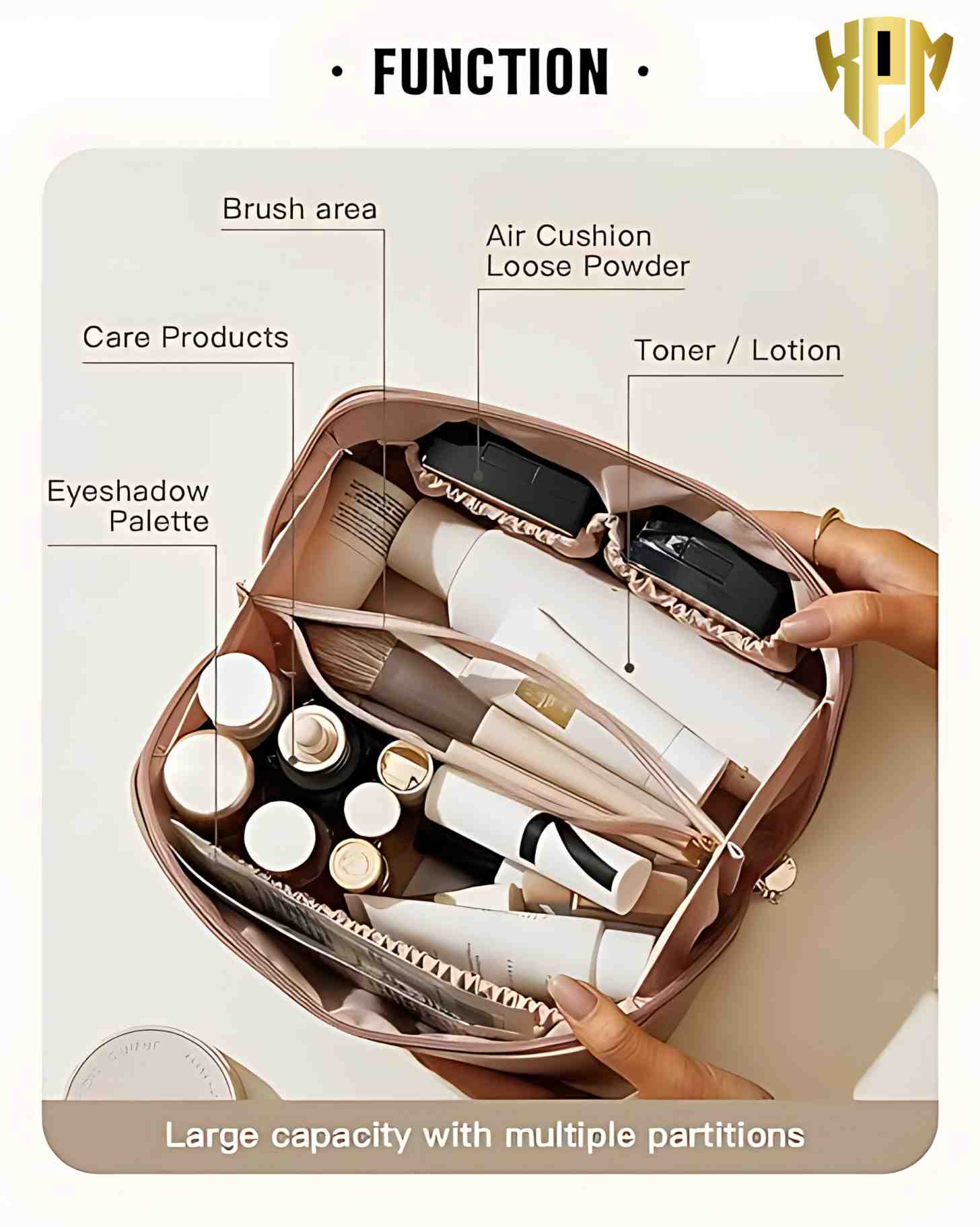 LAYERED DESIGN: cosmetic bag features 4 compartments, allowing you to keep your makeup tools organized. Unlike traditional single-compartment cosmetic bags, it has a layered design for easy categorization and storage. The large opening design provides a hassle-free packing and easy travel experience, avoiding any cluttered mess.